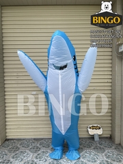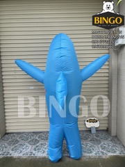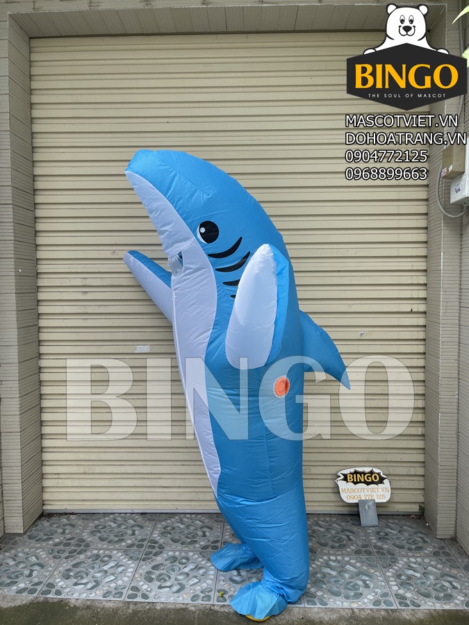 Mascot cá mập xanh được thiết kế liền toàn bộ người mặc dễ dàng mặc và thao tác