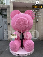 Màu sắc: Gấu teddy được làm từ 9999 bông hồng màu hồng nhạt tạo nên một vẻ đẹp tinh tế và sang trọng, kết hợp với dải lụa nơ đen ở cổ tạo nên điểm nhấn cực kỳ thu hút với khách tham quan.