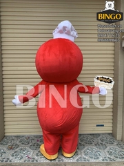 Phía trước ngực mascot được in cách điệu hàng cúc áo mà ta thường thấy ở những ông đầu bếp cộng với cái mũ trắng trên đầu nữa thì mascot đã ra dáng một người đầu bếp chuyên nghiệp rồi.