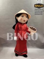 Mascot cô gái Chinsu nổi bật và ấn tượng với hình ảnh cô gái dân tộc trong trang phục màu đỏ. Đây là sản phẩm mới của Bingo.