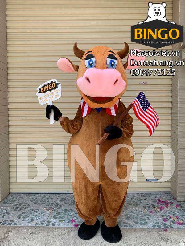 Trang phục mascot con bò Mỹ được thiết kế lại cho phù hợp với người mặc,người mặc dễ dàng nhìn từ bên trong thông qua phần miệng,từ đó dễ dàng hoạt náo