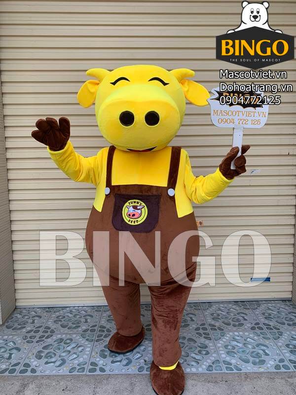Mascot con bò vàng được BINGO thiết kế dựa trên hình ảnh chú bò,được sản xuất bằng những chất liệu siêu nhẹ,an toàn với người sử dụng do đó người mặc thoải mái hoạt náo trong mọi không gian và thời gian
