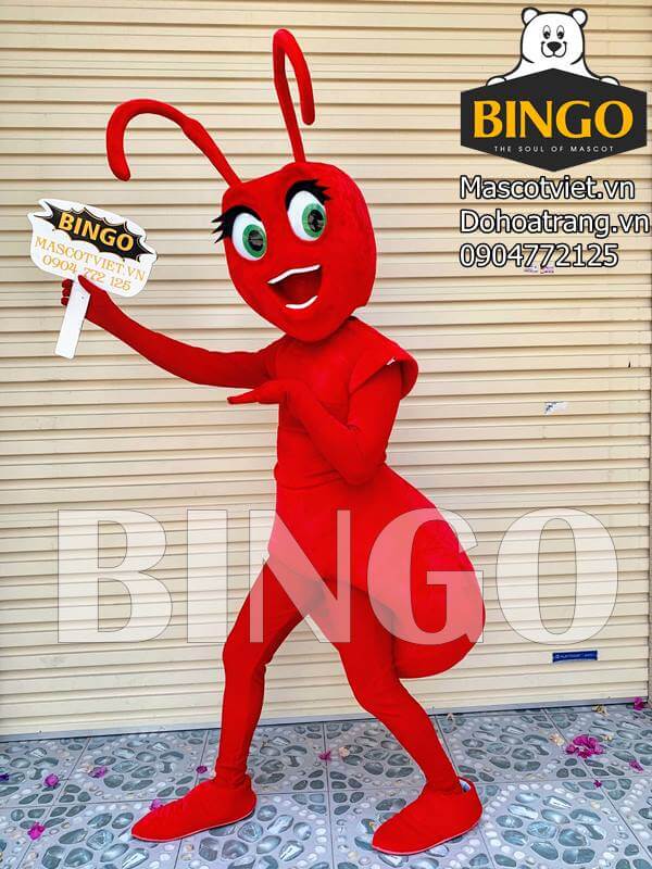 Mascot con kiến đỏ được BINGO sản xuất khá tỉ mỉ full màu đỏ,với khuôn mặt được cắt gọt 3D cho người nhìn có cảm giác như một chú kiến thực thụ