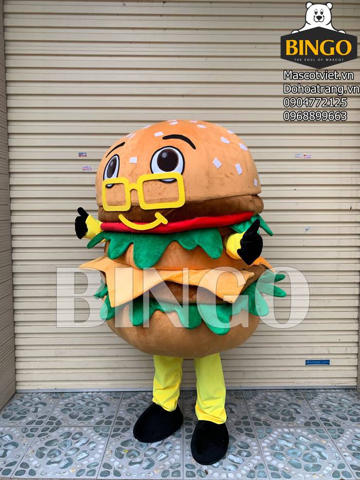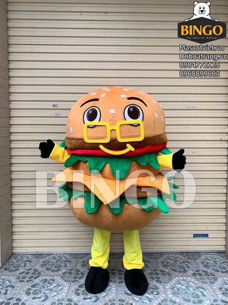 Điểm đặc biệt của mascot Hamberger đó là thiết kế thêm khuôn mặt cho sản phẩm này. Với đôi mắt to tròn cùng cặp kính màu vàng khiến sản phẩm thêm ngộ nghĩnh và đáng yêu hơn.