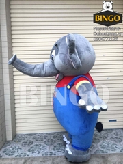 Phần đầu, tay, chân của mascot có màu xám quen thuộc của chú voi, nổi bật lên là gương mặt bầu bình cùng với đôi tai màu hồng siêu đáng yêu. Đi kèm với mascot hơi con voi là bộ yếm màu xanh dương tươi tắn phối với áo trong màu đỏ nổi bật làm cho trang phục mascot trở nên hài hòa hơn bao giờ hết.
