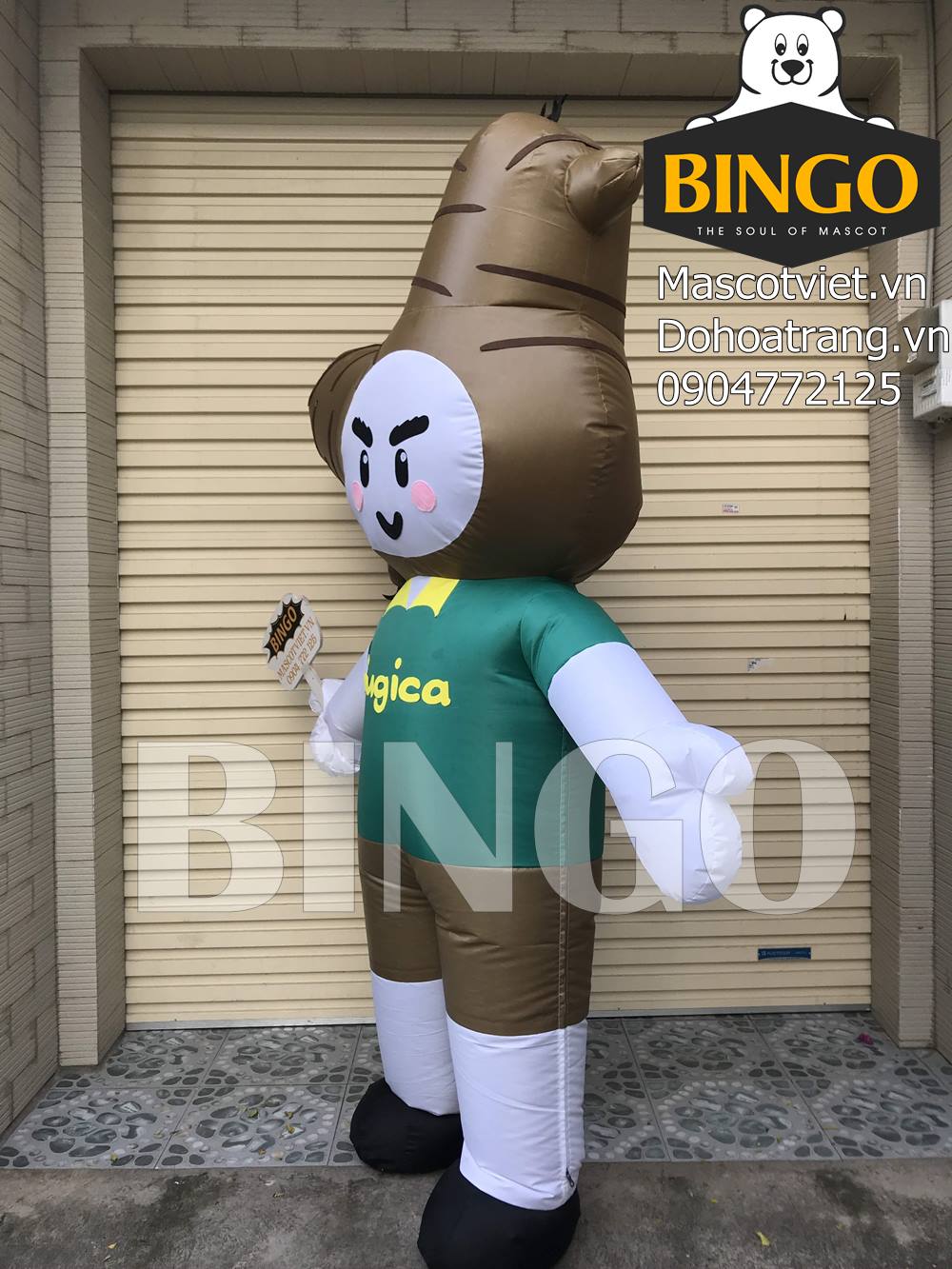 Mascot hơi củ gừng mô tả hình ảnh một củ gừng với phần đầu màu nâu đặc trưng. Nhưng lạ rằng nhân vật này lại có mắt mũi, chân tay rất độc đáo và bắt mắt. Đây chính là điểm phá cách, sáng tạo khiến sản phẩm nhanh chóng thu hút sự chú ý của người qua đường.