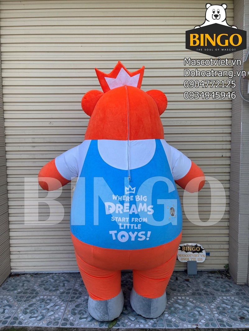 - Trọng lượng trung bình của mascot chỉ từ 2 - 3kg. Vì là mascot hơi, nó được thiết kế với cấu trúc rỗng, người mặc mascot sẽ không phải chịu bất kỳ áp lực nào từ sản phẩm khi chỉ cần bơm lượng hơi cần thiết.