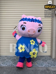 + Cô heo ủn ỉn thứ nhất trong bộ 5 chú heo sở hữu bộ váy màu xanh nước biển điểm xuyết thêm những bông hoa cánh vàng, khéo léo kết hợp cùng một chiếc bờm hoa cách điệu khiến hình ảnh heo xuất hiện trở nên nhẹ nhàng.