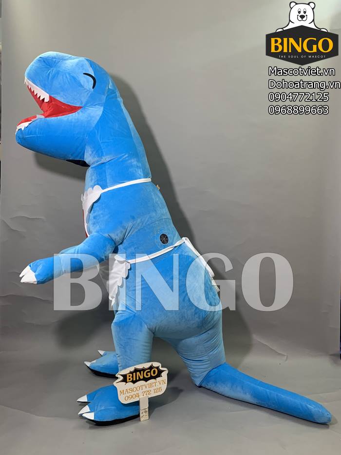 Khủng long mascot nổi bật với thiết kế màu xanh da trời. Đây là gam màu sáng và nổi bật.