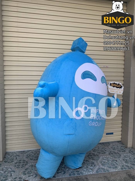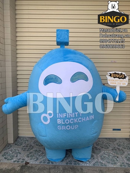 - Phía trước bụng mascot có in dòng chữ INFINITI BLOCKCHAIN GROUP màu trắng