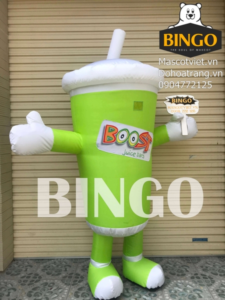 Mascot hơi mô hình cái ly được thiết kế từ vải chống thoát hơi. Sản phẩm sở hữu gam xanh non kết hợp tone trắng rất trẻ trung. Đây sẽ là lựa chọn không tồi khi bạn chuẩn bị khai trương, ra mắt sản phẩm mới, tổ chức hội chợ…