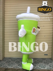 Mascot hơi mô hình cái ly được thiết kế với mô hình một ly trà sữa, bên trên có cắm ống hút.