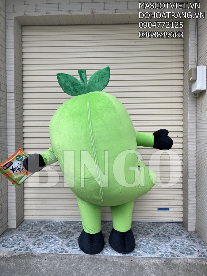 Mascot hơi trái xoài Kokomi có chiều cao tương đương người trưởng thành từ 1m70 – 1m80 cùng gam màu xanh lá ấn tượng.