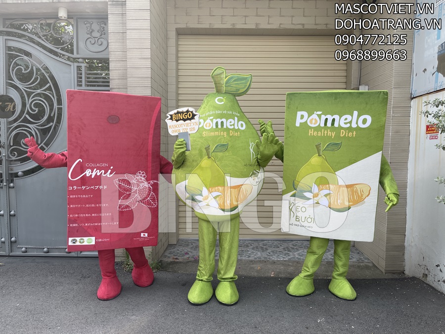 Những mascot mô hình sản phẩm có thêm chân tay như con người và có thể di chuyển đến không gian rộng lớn hơn là chỉ đứng một chỗ. Điều này giúp cho sản phẩm của thương hiệu được lan tỏa nhanh hơn, xa hơn. Hôm nay, Bingo sẽ giới thiệu đến bạn thêm một mẫu mô hình sản phẩm vô cùng xinh đẹp đó chính là mascot hộp kẹo Pomelo nhé.