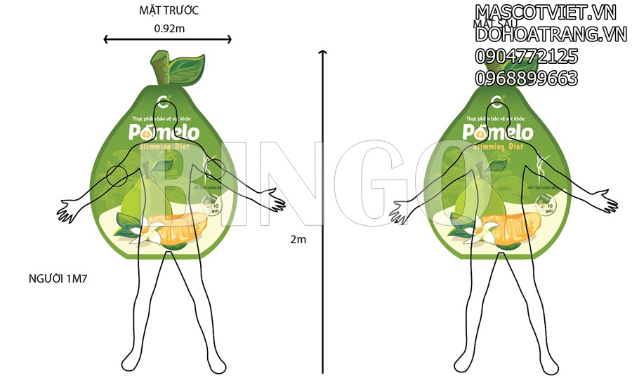 Đây là mascot được sản xuất riêng cho sản phẩm kẹo bưởi giảm cân Pomelo nên nó sẽ phù hợp với bất cứ sự kiện nào của sản phẩm này.