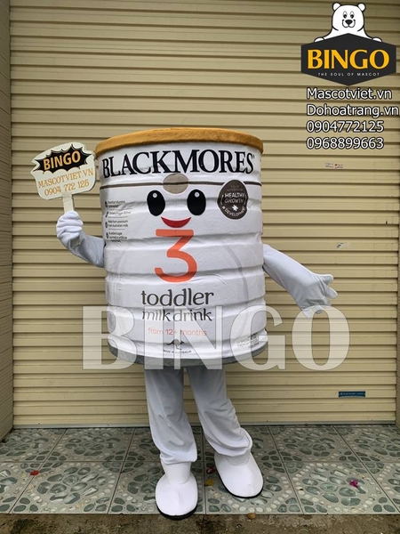 Mascot Bingo sản xuất sản phẩm Mascot lon sữa Blackmores ấn tượng