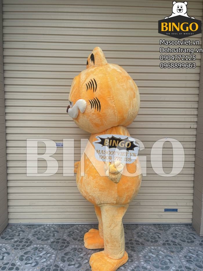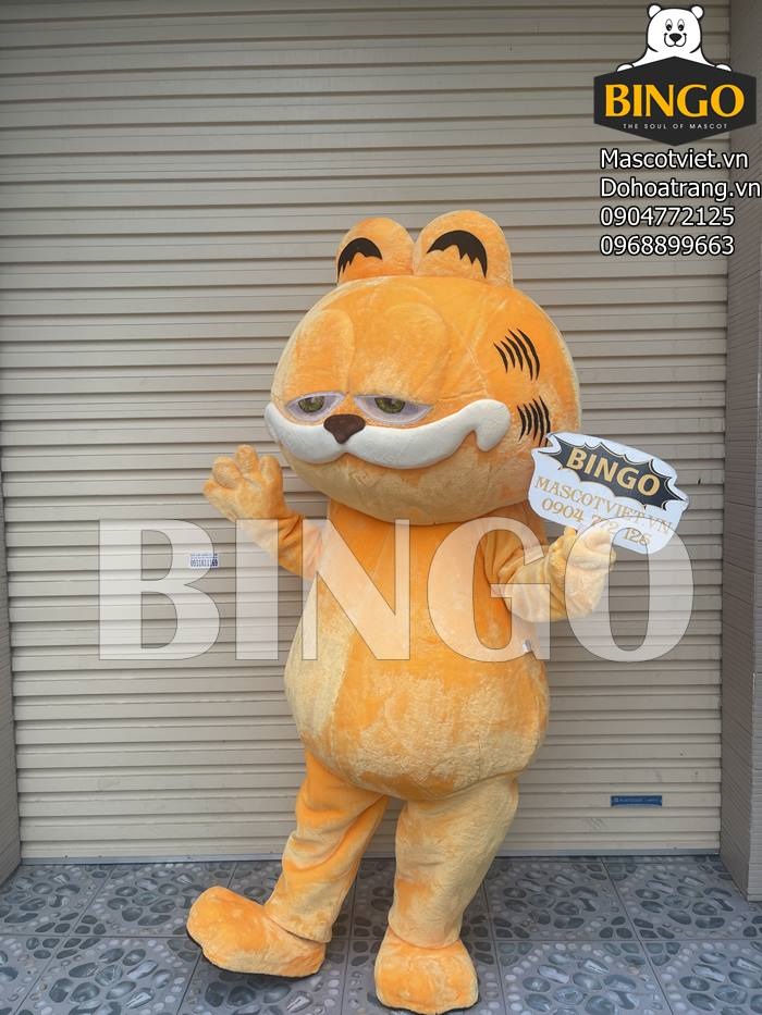 Mascot mèo Garfield nổi bật với hình ảnh chú mèo khác lạ cùng tông màu cam nổi bật chắc chắn sẽ để lại ấn tượng và sự thích thú tại những nơi chú xuất hiện. Đây là macot mới của Bingo.