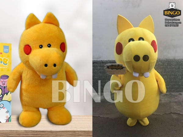 Hình ảnh sản phẩm mascot thật được BINGO sản xuất dựa trên hình ảnh thiết kế để khách hàng có thể dễ hình dung hơn trước khi may mascot theo yêu cầu