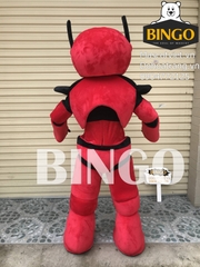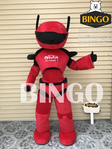 Sản phẩm mô phỏng một siêu robot với phần đầu lớn, có hai anten bắt sóng. Gam màu đỏ đen kết hợp càng tạo nên vẻ bí ẩn, nổi bật giúp Mascot dễ dàng được chú ý.