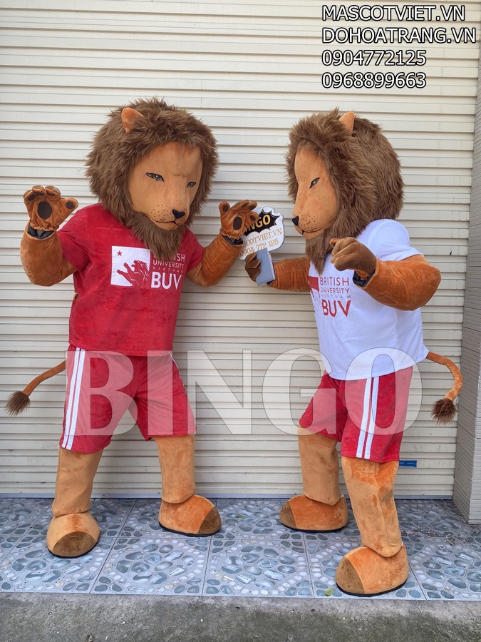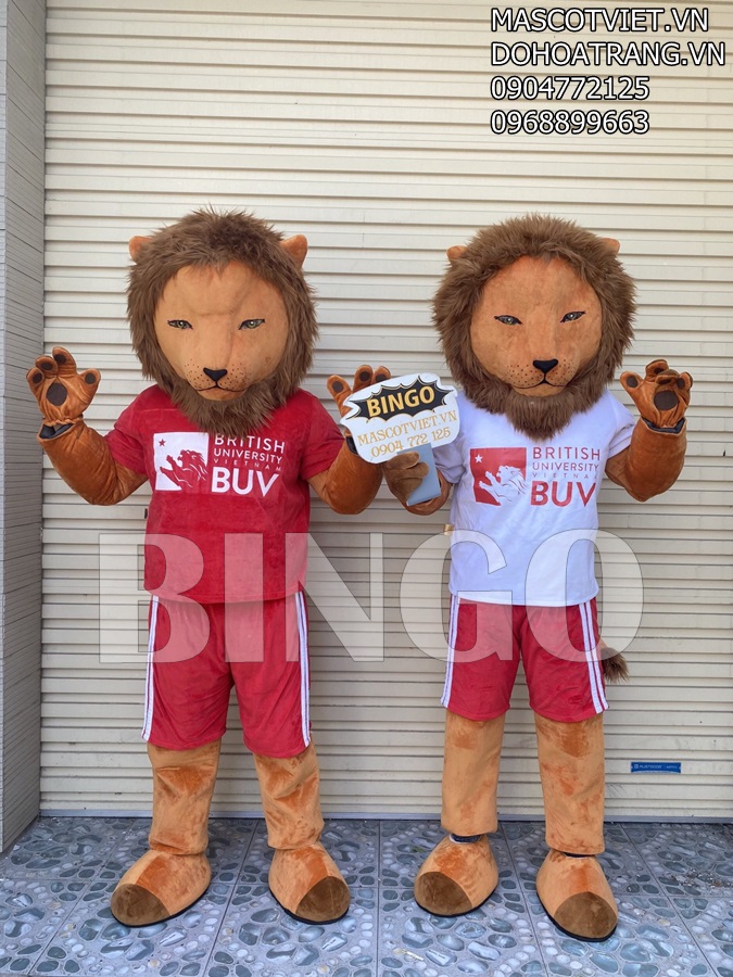 Có hai kiểu trang phục cho sư tử BUV đó chính là quần đùi đỏ kết hợp áo cộc tay đỏ hoặc trắng. Trước ngực mascot sư tử chính là biểu tượng thương hiệu và dòng chữ thương hiệu “British University Vietnam BUV” vô cùng nổi bật trên nền áo.