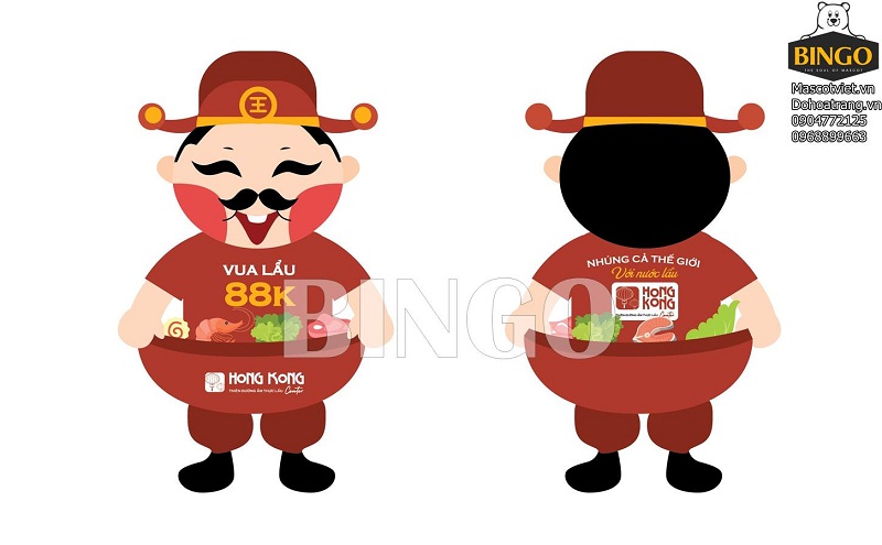 Thần tài là vị thần đem lại tiền tài và may mắn cho mọi nhà, mọi đơn vị kinh doanh. Vị quan này thường đứng một mình nhưng với sự sáng tạo của Bingo thì quan thần tài lại có sự kết hợp độc đáo với ẩm thực thông qua sản phẩm Mascot thần tài Vua lẩu Hong Kong