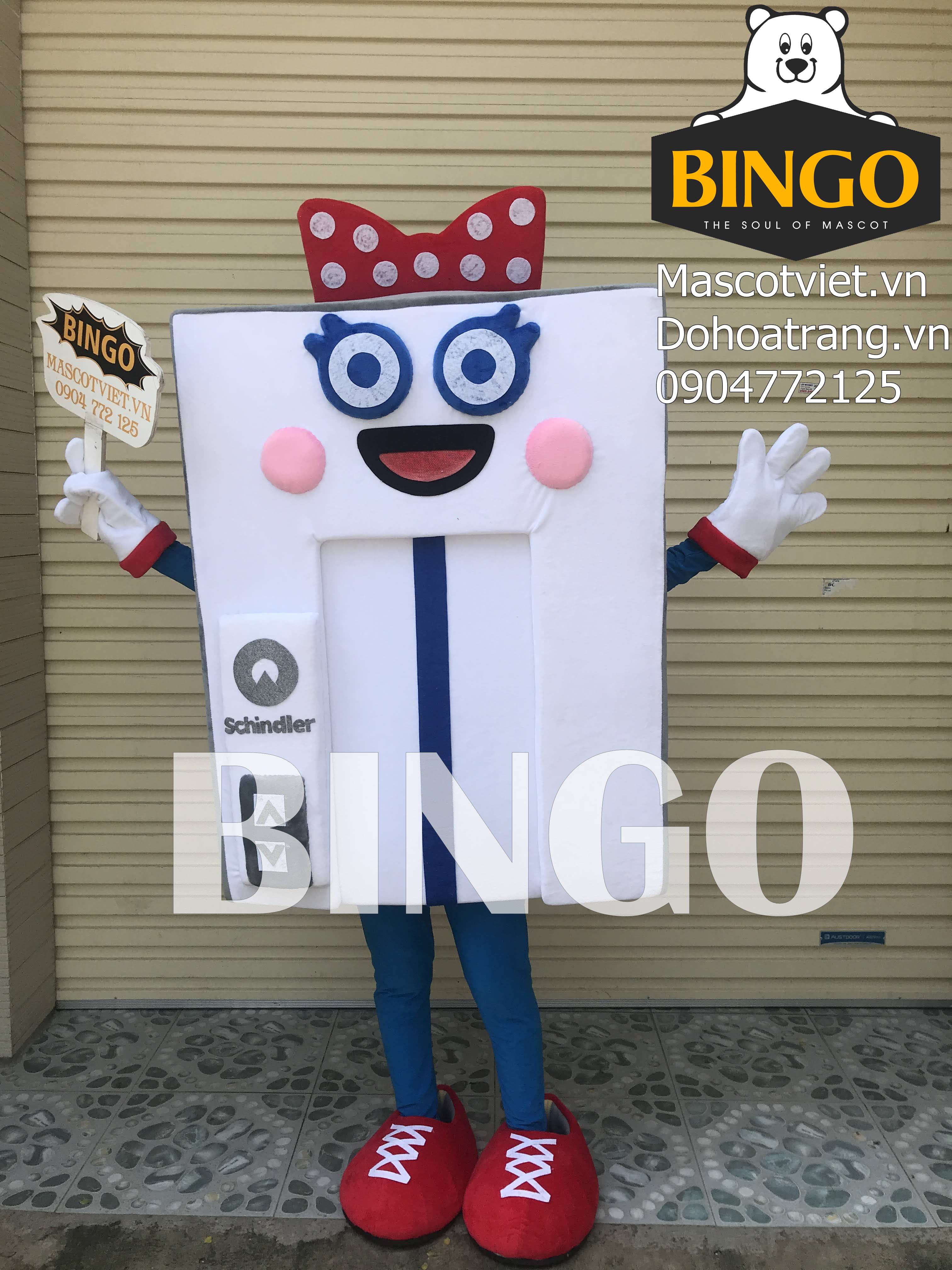 Mascot thang máy được Bingo thiết kế mô phỏng hình dáng một cabin thang máy. Tuy nhiên, khác hẳn với sự đơn điệu, tẻ nhạt, nhân vật này đã được “thổi hồn” bằng cách may thêm mắt, tóc, tay, chân và khuôn miệng cười mở rộng.