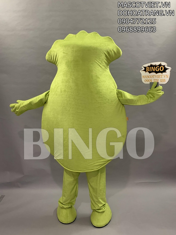 Khi khám phá xong thiết kế thân trước của mascot này, bạn sẽ không khỏi tò mò về thiết kế thân sau của nó phải không. Bingo quyết định lựa chọn chỉ tạo ra màu xanh lá cây cùng màu nền với thân trước và bên trên đó không có bất cứ hình ảnh nào. Điều này sẽ tạo ra hiệu ứng tò mò và khiến mọi người không khỏi rời mắt và muốn tiến lại gần xem mascot đặc biệt này đến từ thương hiệu nào.