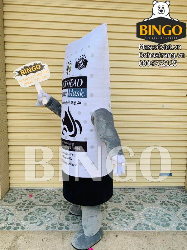 Mascot tuýp kem có nền trắng kết hợp gam đen rất tinh tế, nổi bật và sang trọng. Đây là một trong những mẫu Mascot may theo yêu cầu hot nhất, luôn được khách hàng của Bingo ưu tiên lựa chọn.