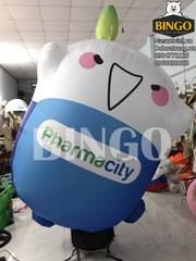 Mô hình bơm hơi Pharmacity là mô hình trưng bày có tạo hình dễ thương với khuôn mặt tươi cười, chiêc miệng rộng cùng đôi má ửng hồng nhí nhảnh.