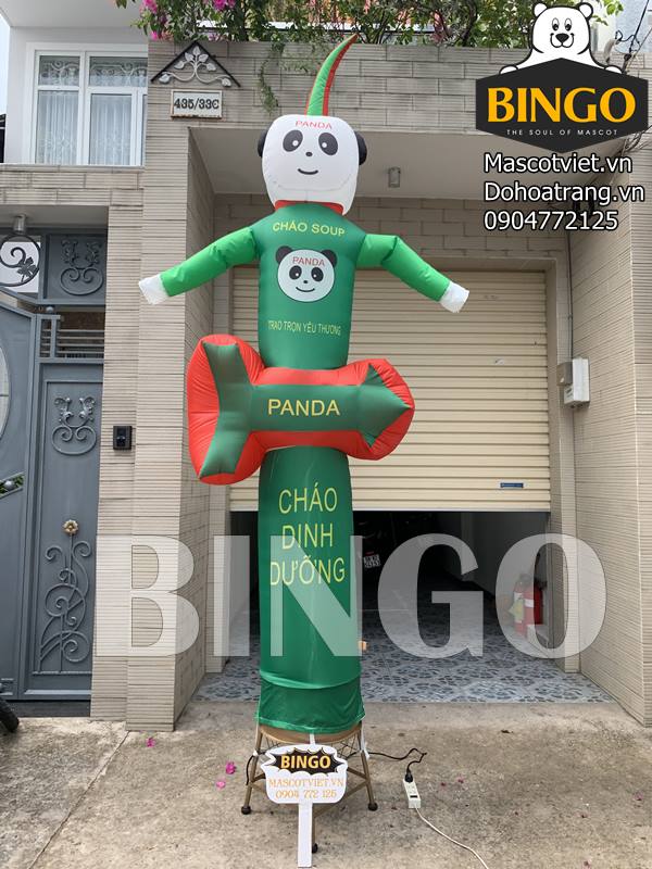 Lấy ý tưởng từ tên thương hiệu của khách hàng, đội ngũ nhân viên của BINGO đã thiết kế và cho ra mắt mô hình hơi – rối hơi kết hợp với hình dạng gương mặt của gấu trúc vô cùng đáng iu và gần gũi. Sắc màu xanh lá vô cùng nổi bật, thu hút được sự chú ý của những người xung quanh nhưng lại không gây cảm giác quá chói hay khó chịu khi nhìn lâu. Trên phần thân của mô hình gấu trúc bằng hơi được thiết kế cẩn thận để có thể in lên đầy đủ những thông tin cơ bản của doanh nghiệp khách hàng như: tên công ty, tên sản phẩm, slogan,…