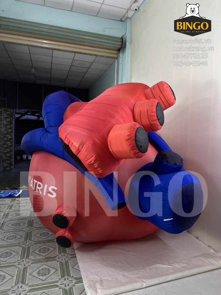 Mô hình hơi trái tim kích thước lớn, thiết kế mô phỏng chi tiết giải phẫu học với tông đỏ – xanh nổi bật và các đường gân nổi ấn tượng. Đây là sản phẩm độc đáo dùng trong các sự kiện y tế, truyền thông sức khỏe, giúp thu hút sự chú ý và nâng cao nhận thức cộng đồng.