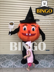 Mascot trái bí ngô với bộ màu da cam rực rỡ, còn lại là màu đen huyền bí tăng thêm phần kinh dị trong buổi lễ hóa trang. Kèm mũ phù thủy cá tính, bạn có thể sử dụng thêm các trang phục hóa trang khác để thêm phần sinh động cho buổi hóa trang của mình và tăng hiệu ứng đám đông hơn để tiếp cận khách hàng tốt hơn.