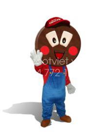 Mascot bánh chocopie được thiết kế nhân cách hóa hơn, phần đầu có chiếc mũ xinh xinh, cùng hai má hồng đáng yêu. Phần thân mặc trang phục quần yếm vô cùng sáng tạo, làm nên những nét mới mẻ của trang phục, thu hút nhiều đối tượng khách hàng hơn. Quý khách hoàn toàn có thể thay đổi kích thước, màu sắc, logo trang phục để trông hoàn hảo hơn.