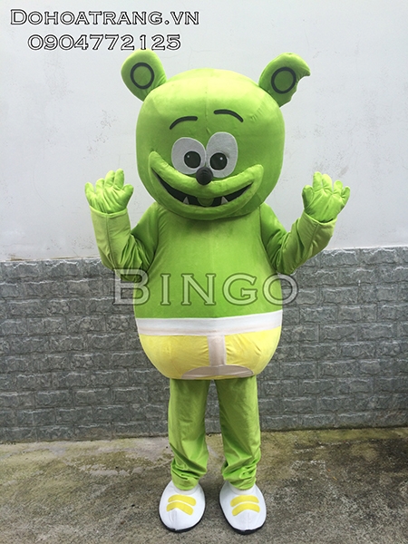 Mascot gấu Gummy - bộ trang phục này được thiết kế với màu xanh tươi sáng, nhấn vài chỗ màu vàng, kèm găng tay, giày.Đúng rồi. Bây giờ chúng tôi không thể hứa rằng trang phục này sẽ làm cho bạn may mắn, nhưng nếu bạn là bất cứ điều gì, hay hoạt náo sôi động tại sự kiện, chúng tôi tin rằng bạn có thể tạo nên may mắn của riêng bạn.