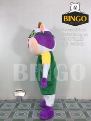 Mascot bò kẹo sữa Sumika là hình ảnh đại diện độc đáo và dễ thương cho thương hiệu kẹo sữa Sumika. Với thiết kế nổi bật gồm chiếc kính xanh, lớp lông trắng điểm tím bắt mắt cùng bộ đồ màu xanh lá – vàng rực rỡ, mascot này không chỉ thu hút sự chú ý mà còn mang lại cảm giác vui nhộn, gần gũi với trẻ nhỏ. Khuôn mặt tươi cười cùng đôi má ửng hồng tạo nên vẻ ngoài thân thiện. Phía sau trang phục có in số 10 và tên thương hiệu rõ ràng, giúp nhận diện dễ dàng và tăng độ phủ sóng cho nhãn hàng.