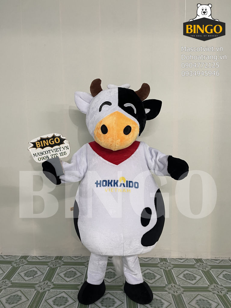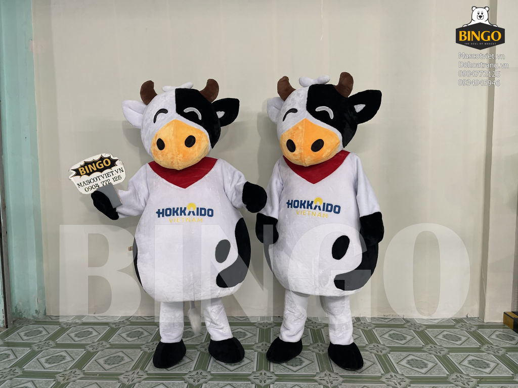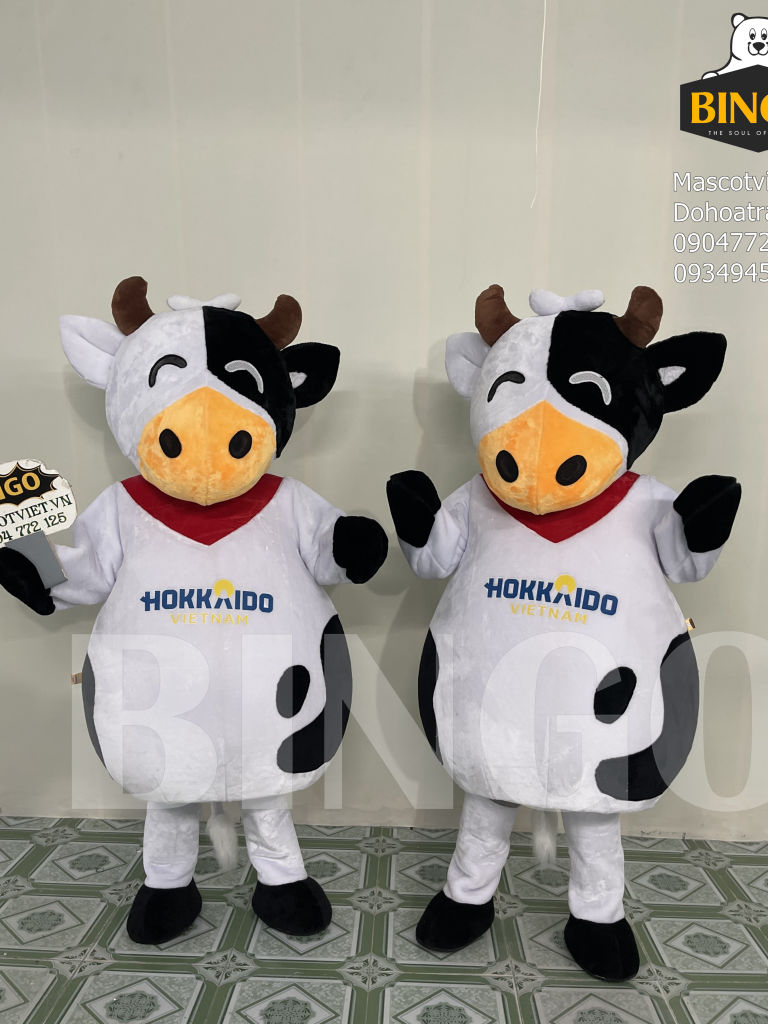 Mascot bò sữa Hokkaido được BINGO may theo yêu cầu của khách hàng
