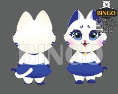 Thân mascot khoác lên chiếc áo dài tay màu trắng cùng chân váy màu xanh, xếp ly điệu đà.