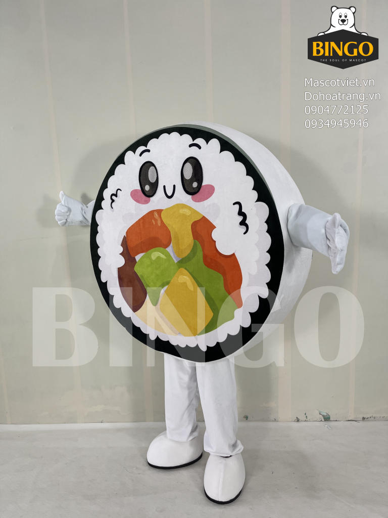 Mascot Genkai Kitchen là hình ảnh một cuộn sushi khổng lồ, vừa dễ thương vừa độc đáo, nổi bật với hai mặt: một bên là logo thương hiệu Genkai Kitchen, bên còn lại là hình cuộn sushi tươi ngon với gương mặt đáng yêu, đôi mắt long lanh và má hồng tinh nghịch. Thiết kế tròn đầy, phối màu bắt mắt, mascot này không chỉ giúp thu hút sự chú ý mà còn tạo thiện cảm ngay từ cái nhìn đầu tiên.