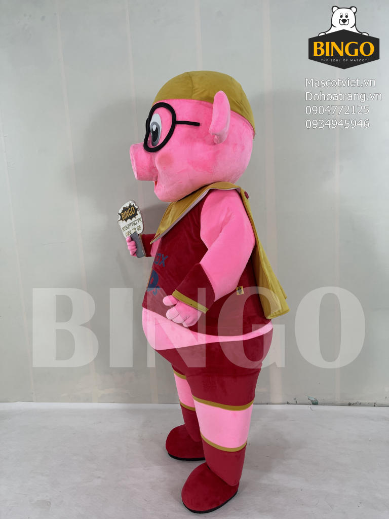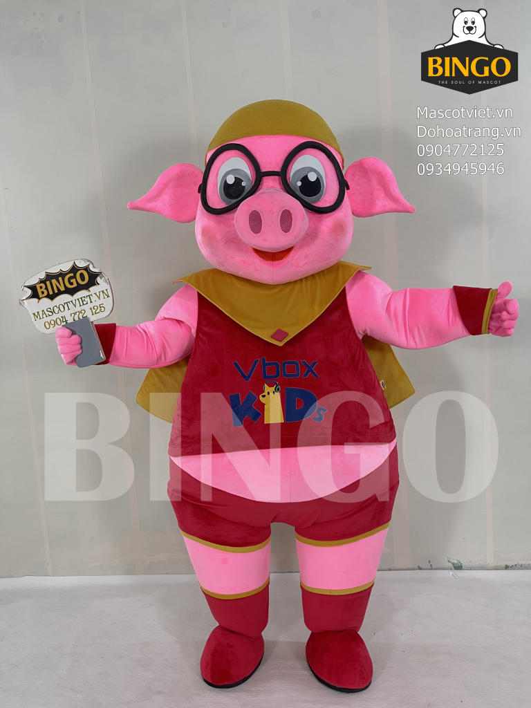 Mascot Heo Vboxkids là mẫu linh vật được thiết kế riêng cho chương trình thiếu nhi, nổi bật với tạo hình heo hồng đáng yêu, đeo kính tròn, đội mũ và mặc áo choàng vàng như một “siêu nhân heo” thân thiện. Với màu sắc tươi sáng, logo “Vbox Kids” in nổi bật phía trước ngực, mascot không chỉ thu hút sự chú ý của trẻ em mà còn giúp tăng nhận diện thương hiệu hiệu quả. Chất liệu vải cao cấp, mềm mại, an toàn khi sử dụng trong môi trường có trẻ nhỏ.