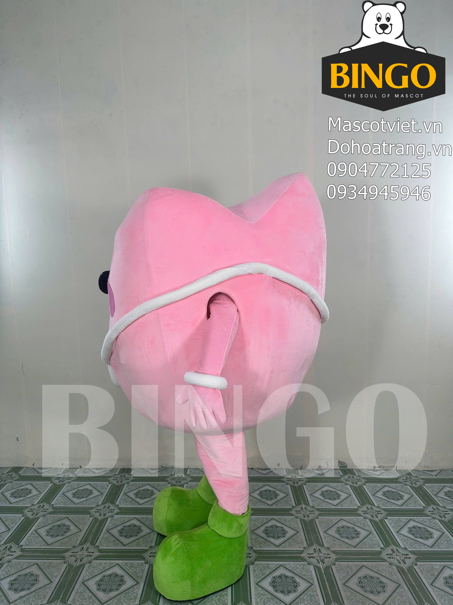 Phần chân và tay được phối màu xanh lá tươi, tượng trưng cho cành lá hoa tulip, tạo nên tổng thể hài hòa, sinh động và gần gũi. Chất liệu vải nhung cao cấp giúp mascot mềm mại, dễ di chuyển và thoáng khí khi sử dụng trong sự kiện.