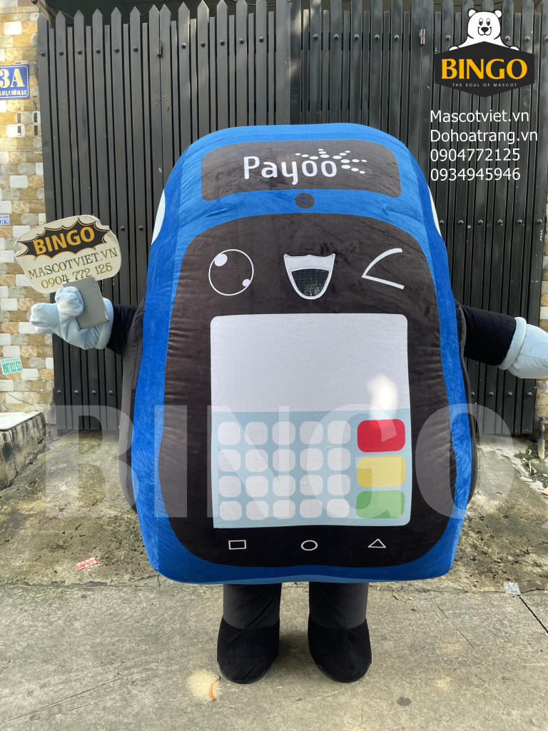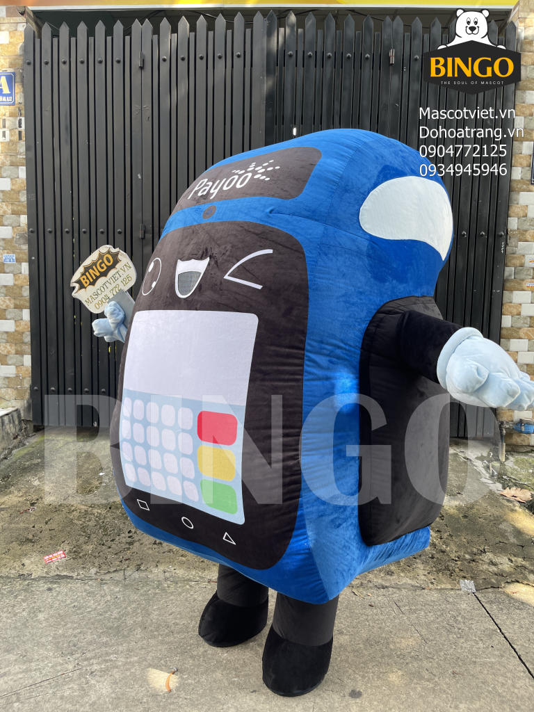 Mascot hơi Payoo là hình ảnh vui nhộn của máy POS thanh toán, với màu xanh thương hiệu nổi bật và gương mặt thân thiện, đại diện cho sự hiện đại và tiện lợi trong giao dịch.