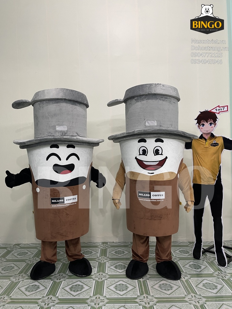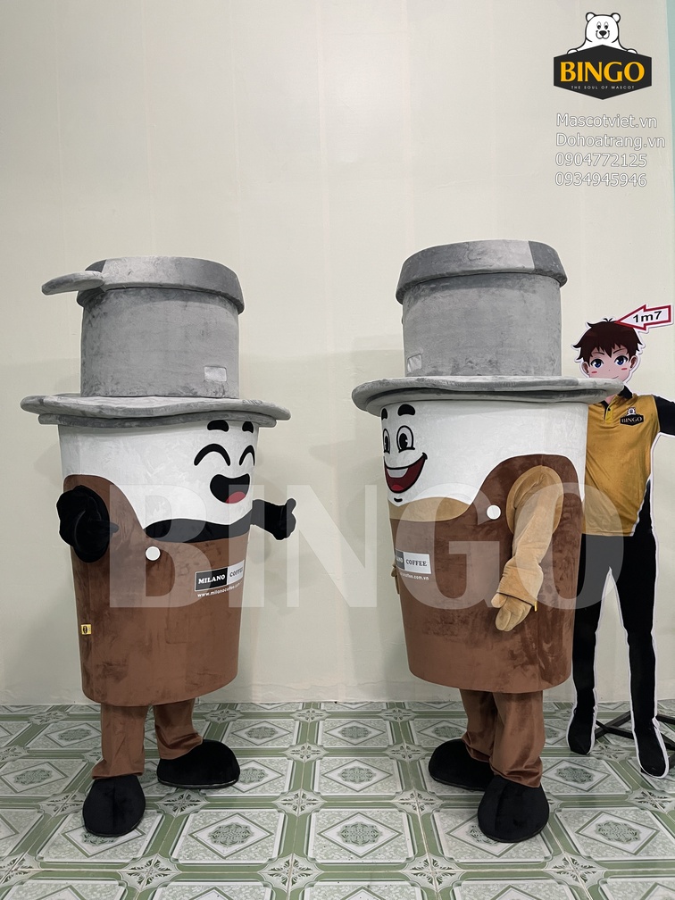 Mascot ly cà phê Milano được BINGO may theo yêu cầu của khách hàng