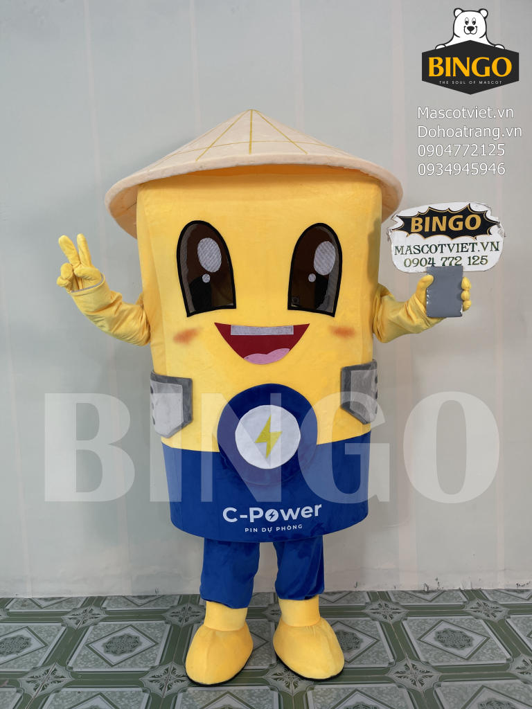 Đây là mascot Pin Sạc Dự Phòng C-Power – một nhân vật năng động, dễ thương và tràn đầy năng lượng! Với thiết kế hình viên pin tươi sáng, đội nón lá truyền thống, mascot này vừa thân thiện lại vừa gần gũi. Nụ cười tỏa sáng, biểu tượng sét điện nổi bật và đôi mắt long lanh khiến ai nhìn cũng thấy “nạp đầy năng lượng