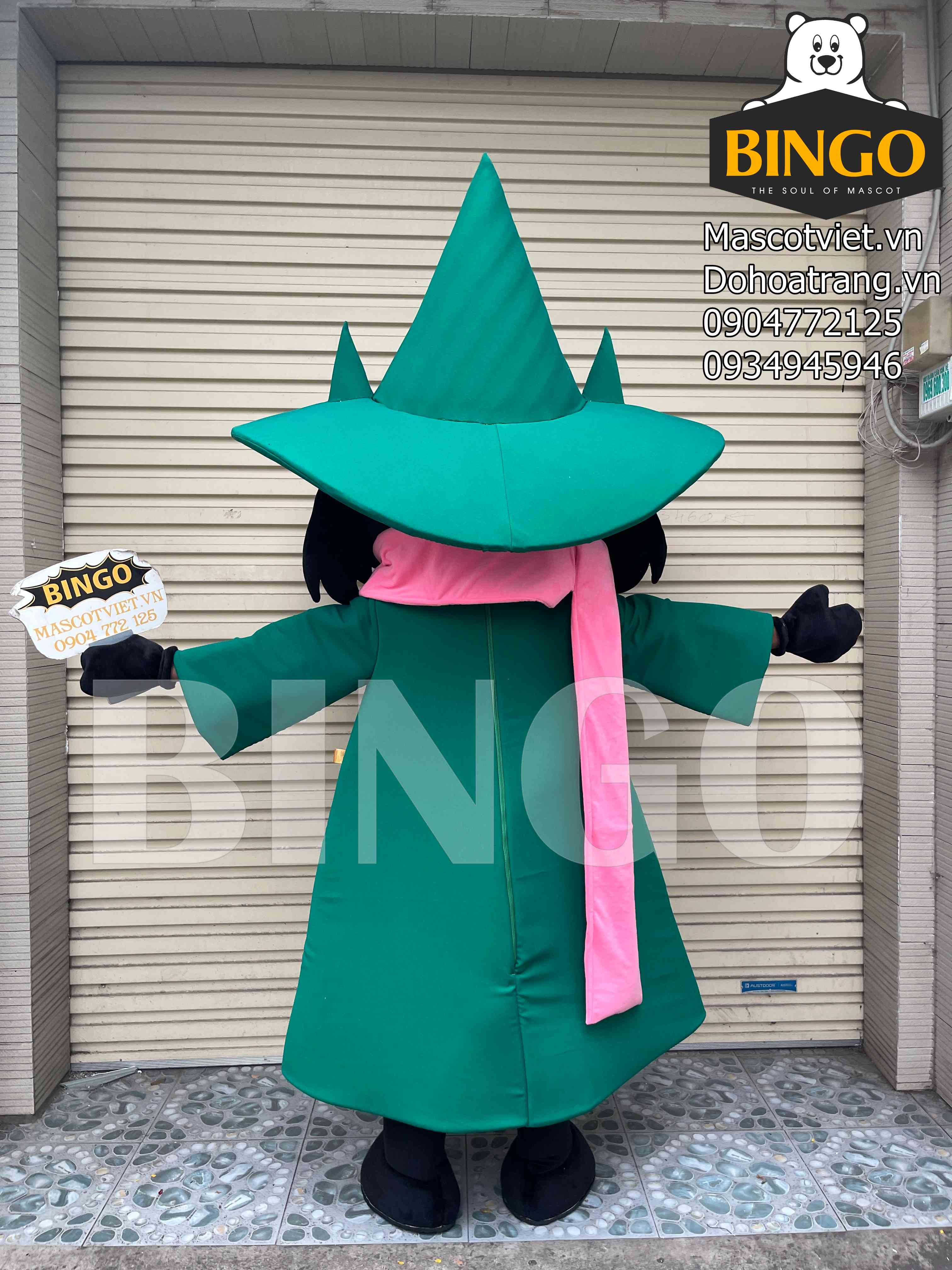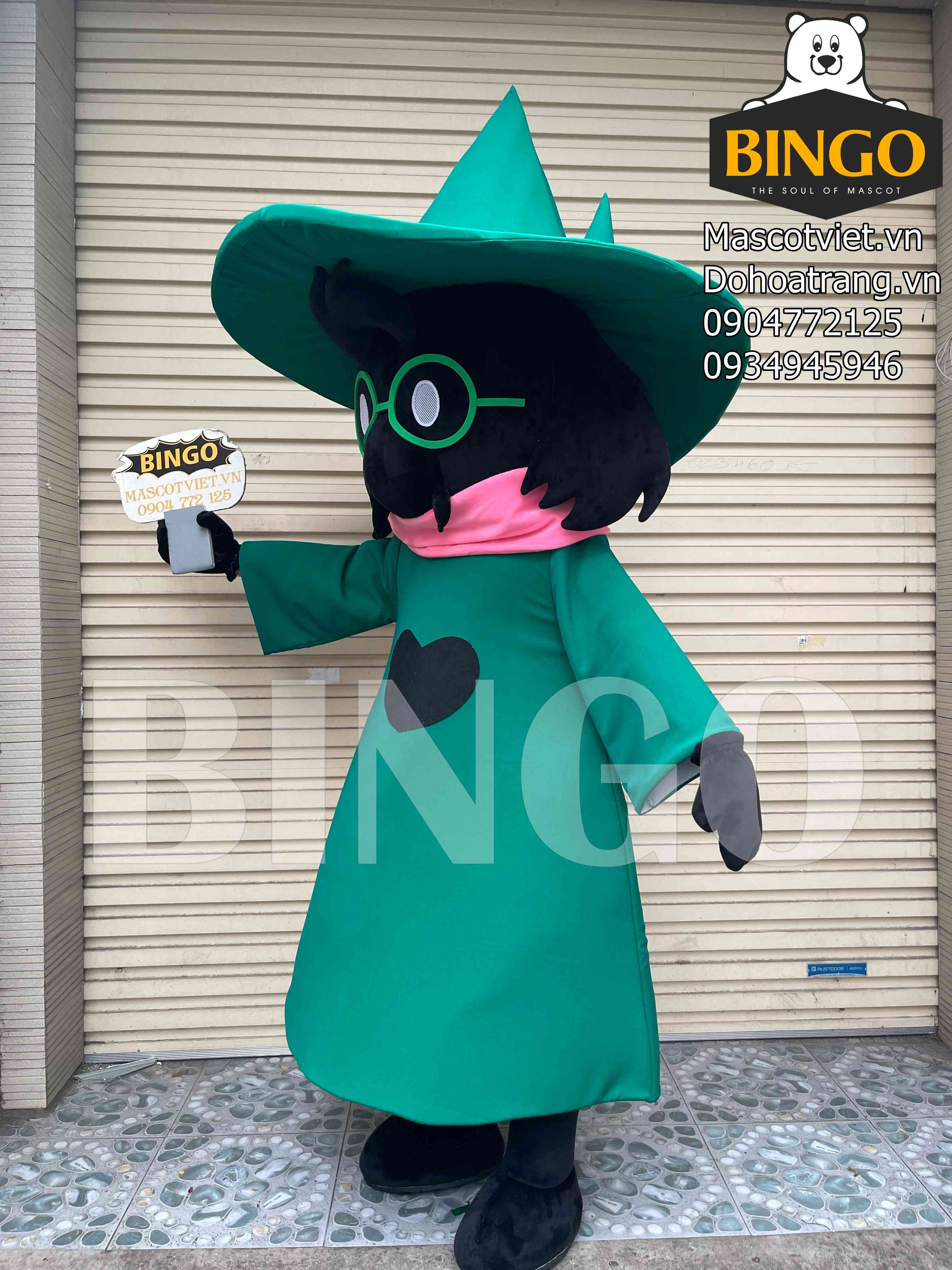 Mascot được phủ toàn thân bởi màu đen tuyền, khoác bên ngoài lớp áo màu xanh tone sur tone với màu của chiếc mũ.