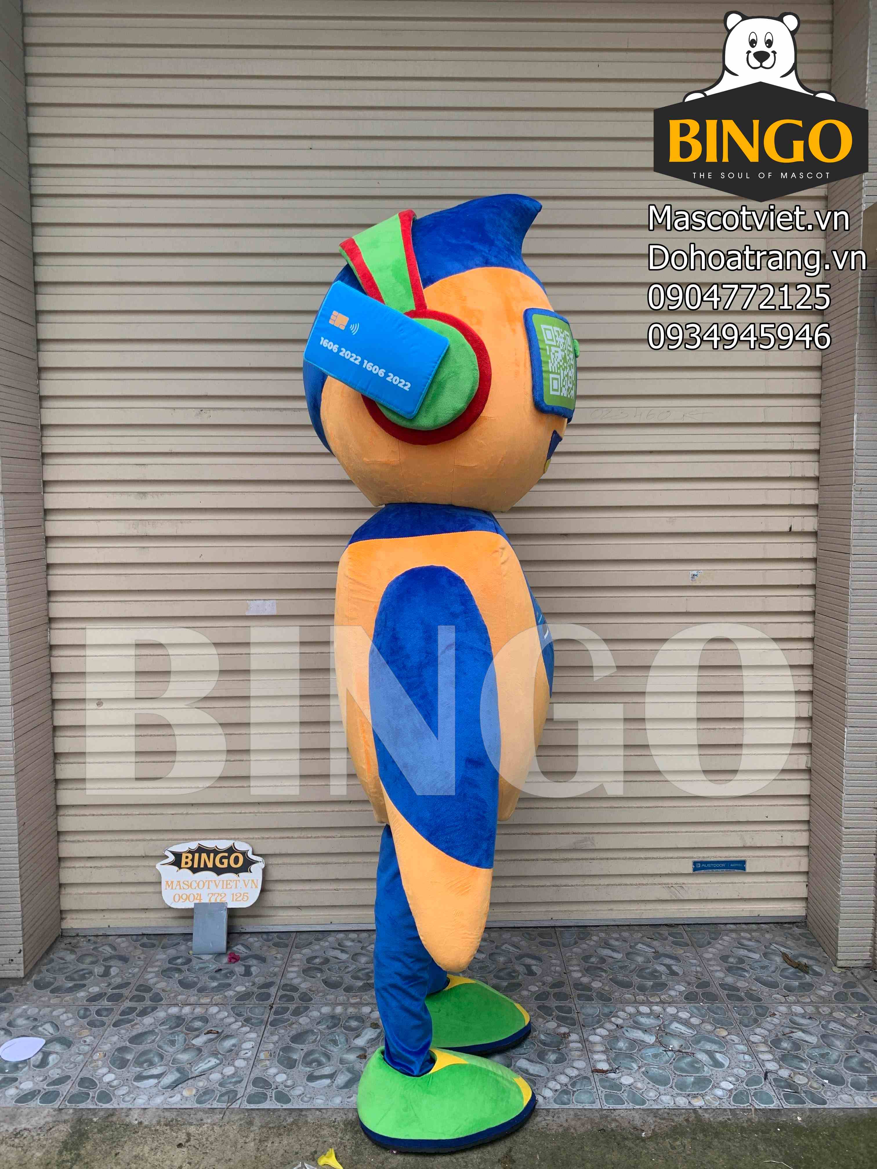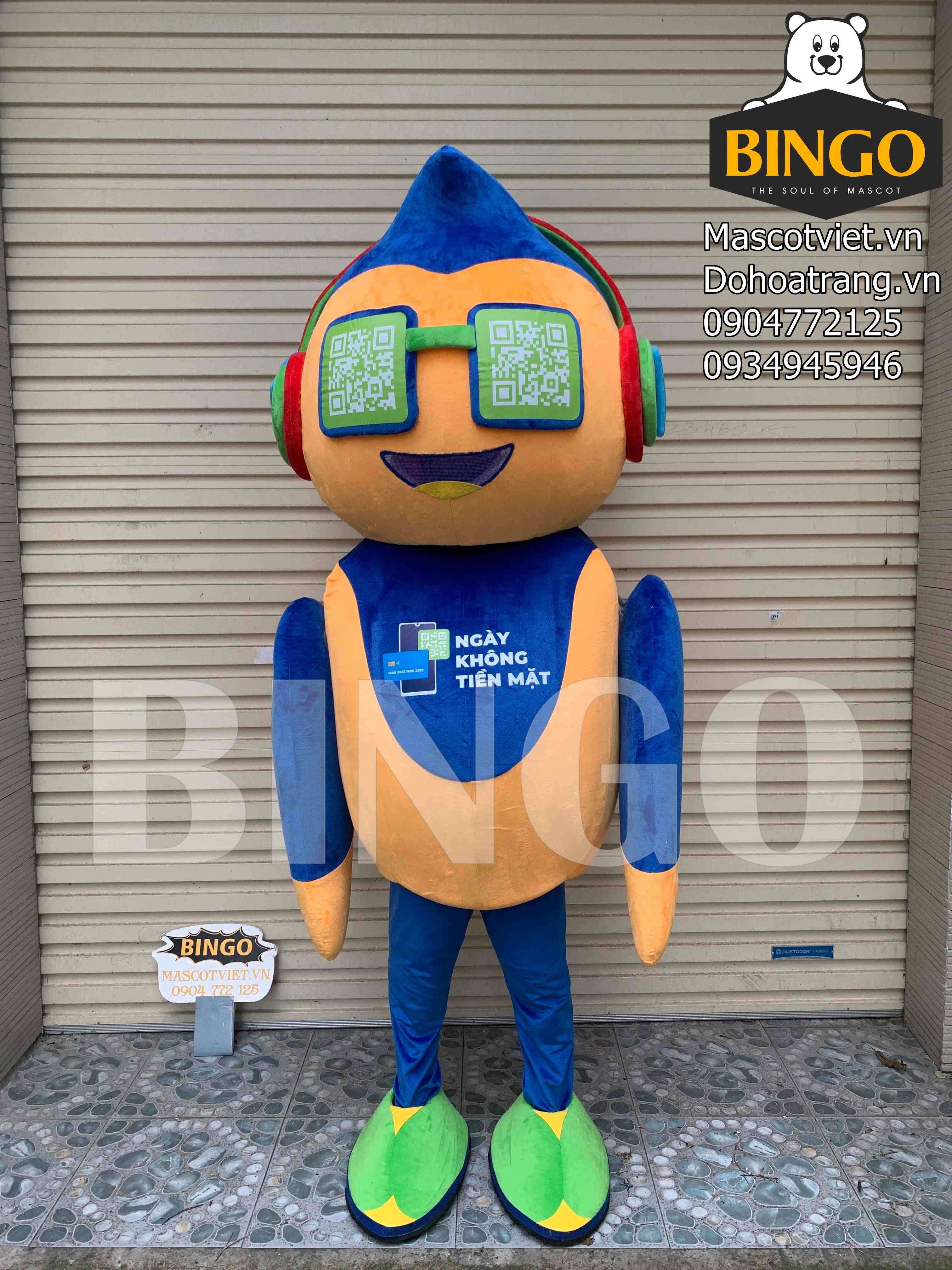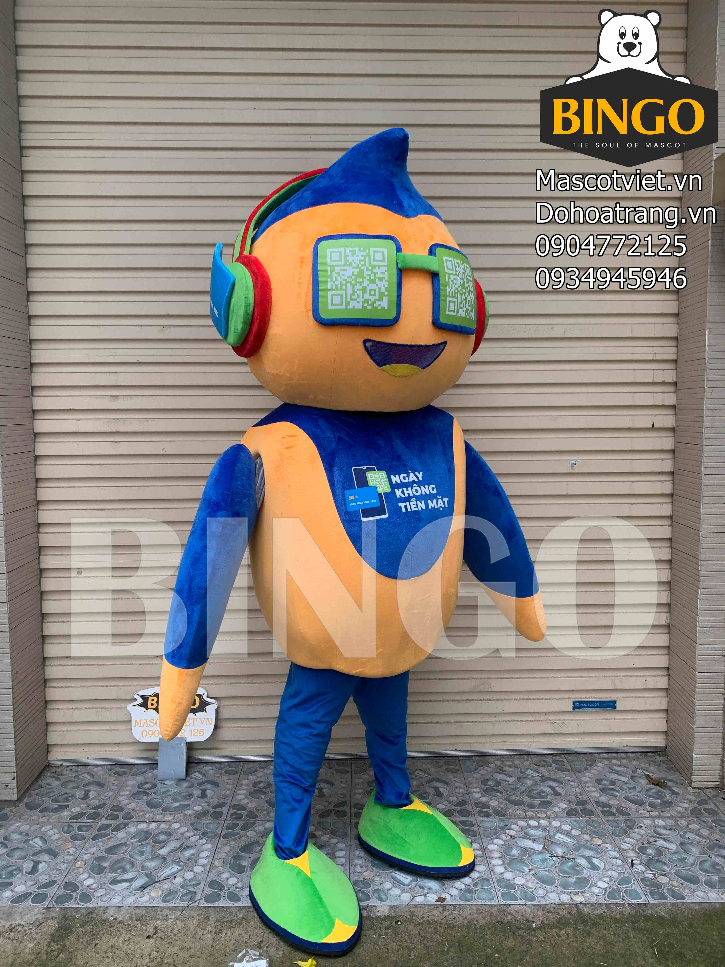 Mascot robot ngân hàng được thiết kế dưới dạng mascot người mặc, loại mascot bông, nằm trong danh mục sản phẩm mascot mới.