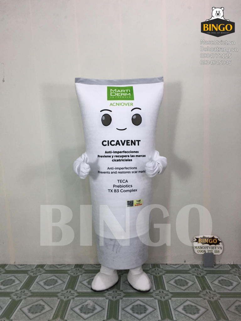 Mascot tuýp kem CICAVENT được thiết kế dựa trên sản phẩm của MartiDerm – nổi tiếng với khả năng phục hồi và làm dịu làn da. Với tạo hình dễ thương, đôi mắt to tròn và biểu cảm thân thiện, mascot giúp thương hiệu trở nên gần gũi, nổi bật trong các sự kiện, hội chợ hay chiến dịch quảng bá sản phẩm chăm sóc da.