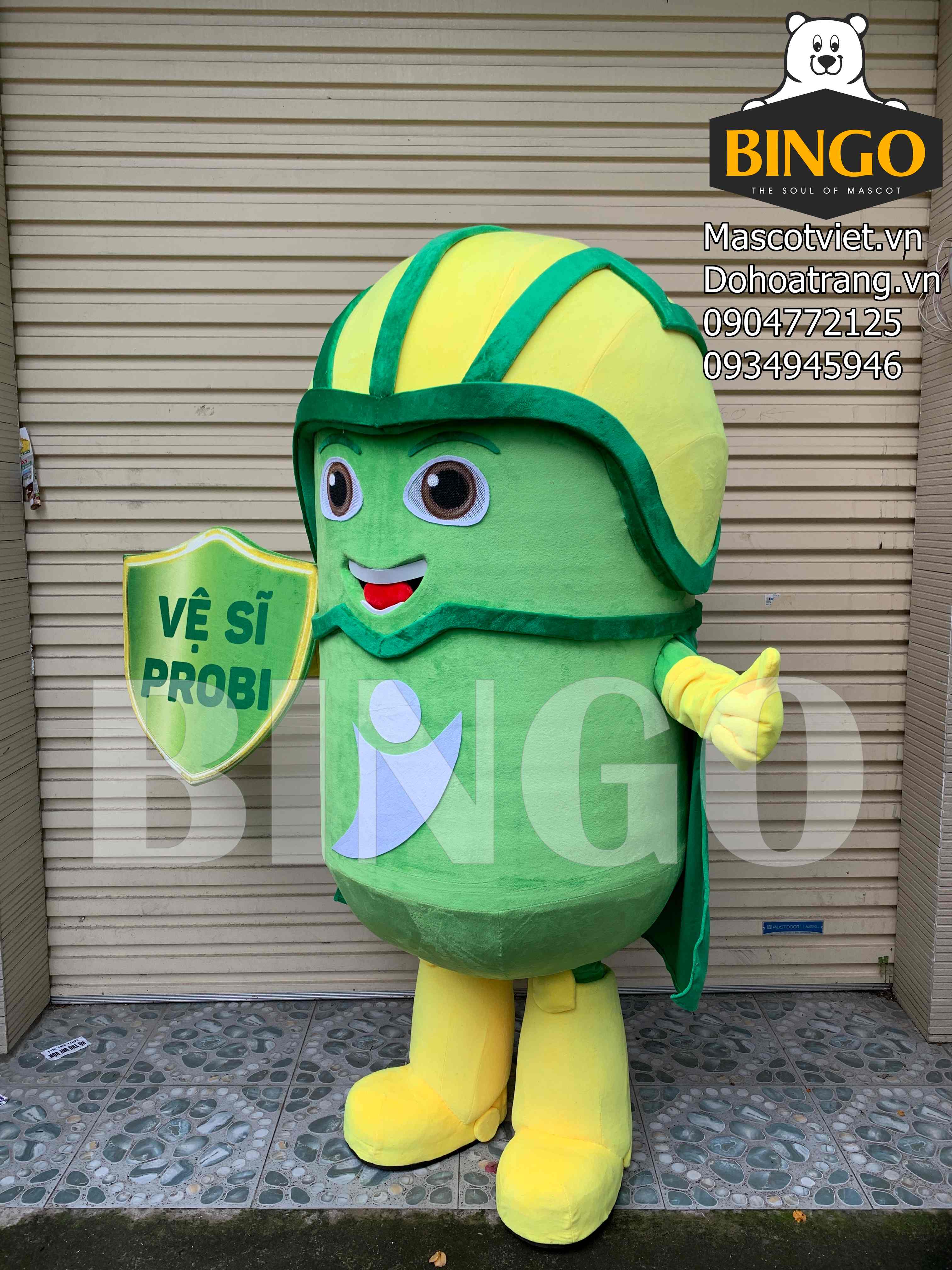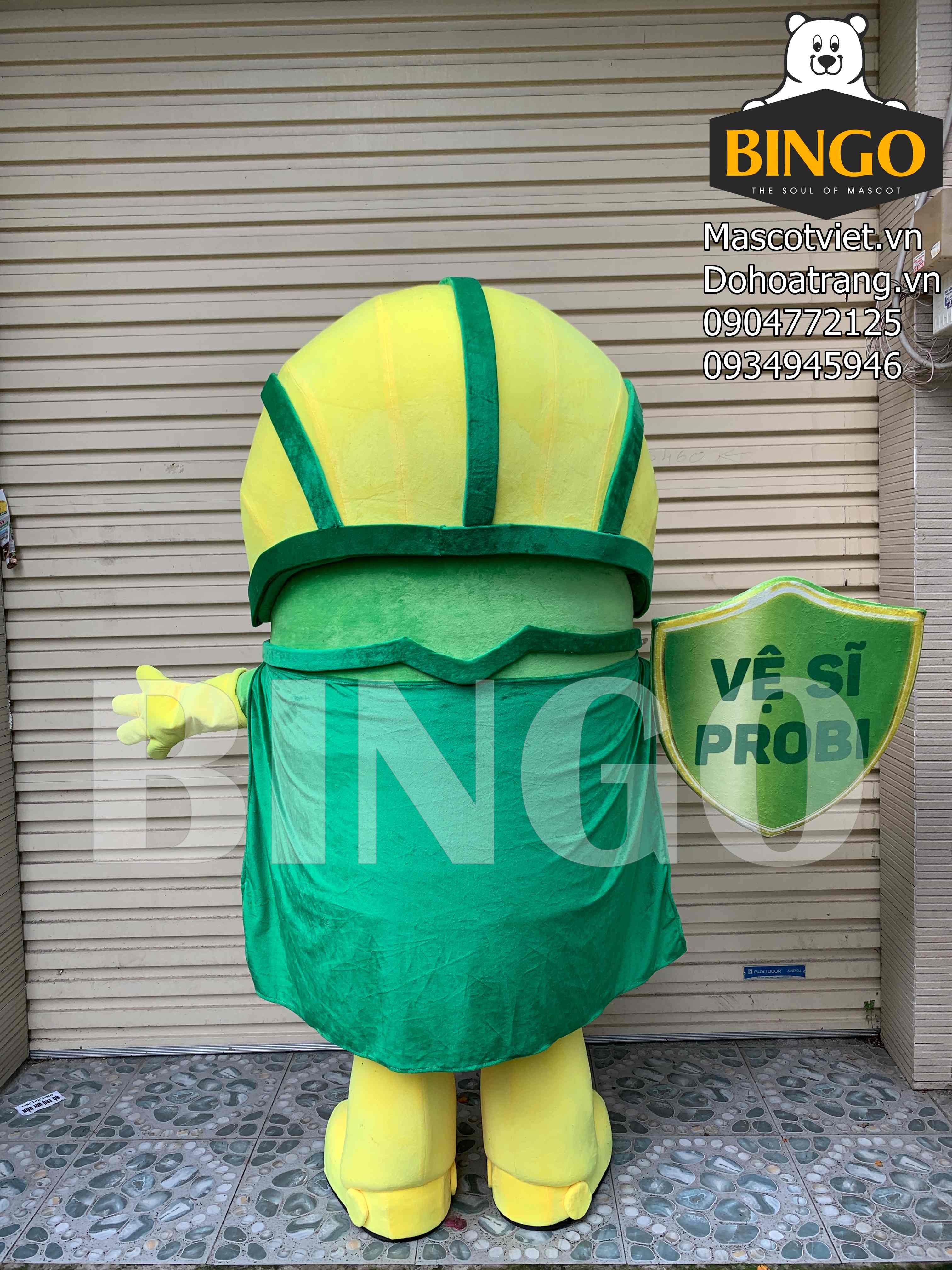 Ngoài ra, sản phẩm mascot vệ sĩ Probi còn được Nhà sản xuất khéo léo trang bị thêm một chiếc khiên chắn với dòng chữ “vệ sĩ Probi” nổi bật. Như một cách khẳng định thêm về công dụng và giá trị của sản phẩm trước người tiêu dùng.