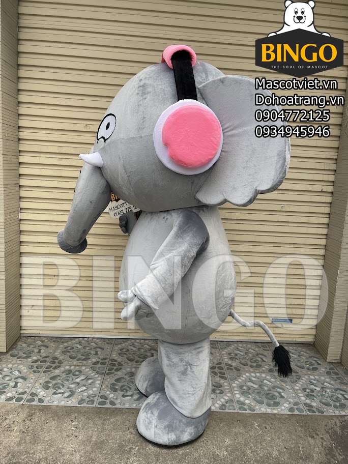 Phần đầu mascot được thiết kế to, tròn, ngộ nghĩnh với đôi mắt cách điệu, đôi tai to bản ve vẩy, hai cặp ngà bé xinh nhú hai bên, chiếc vòi voi đặc trưng, thuôn nhỏ về phần đầu voi. Đặc biệt, chú voi xuất hiện vô cùng phong cách với chiếc tai nghe màu hồng đen sành điệu.