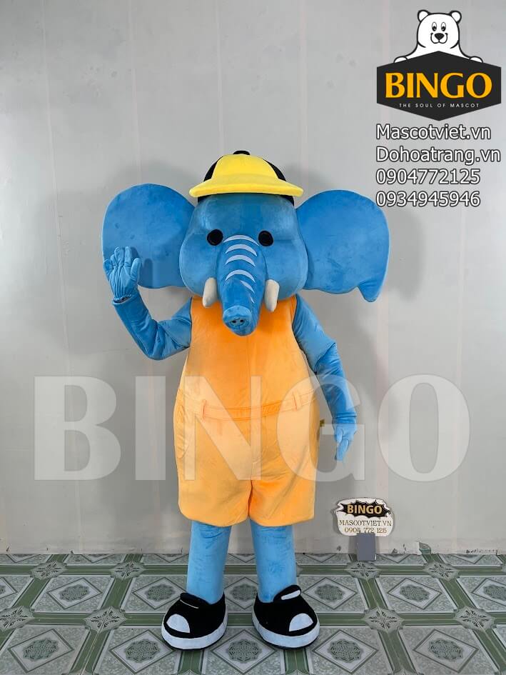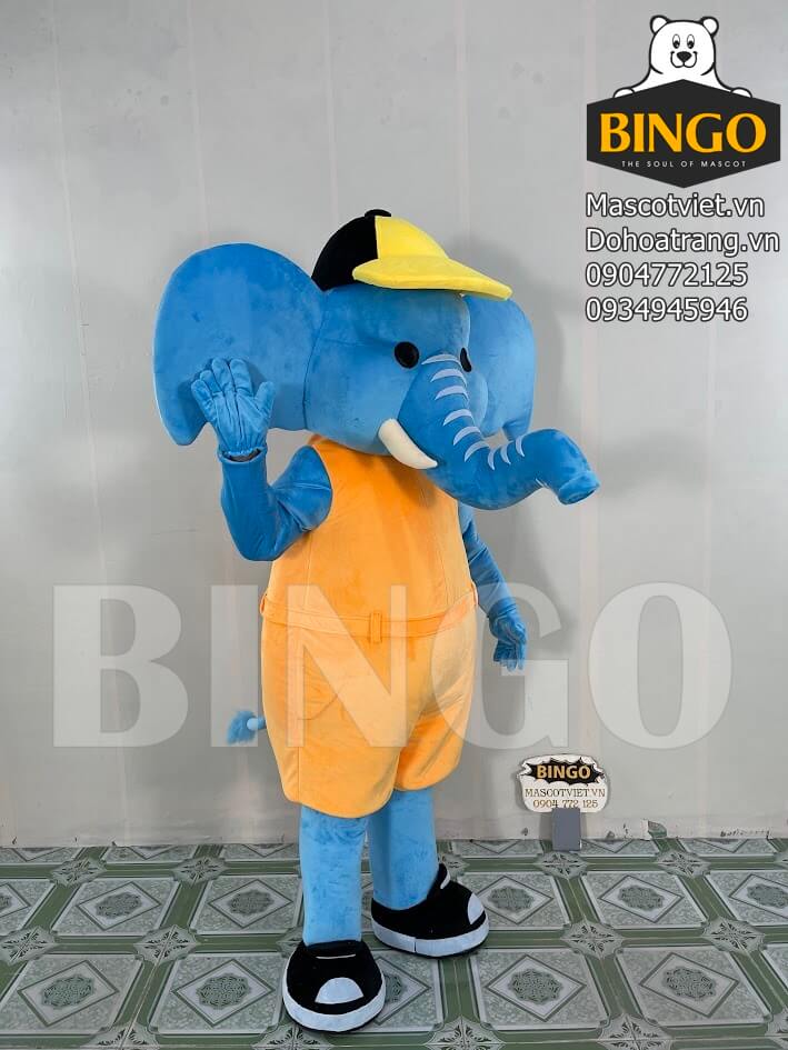 Mascot voi xanh trong hình là một mẫu mascot dễ thương, mang phong cách gần gũi và sinh động.