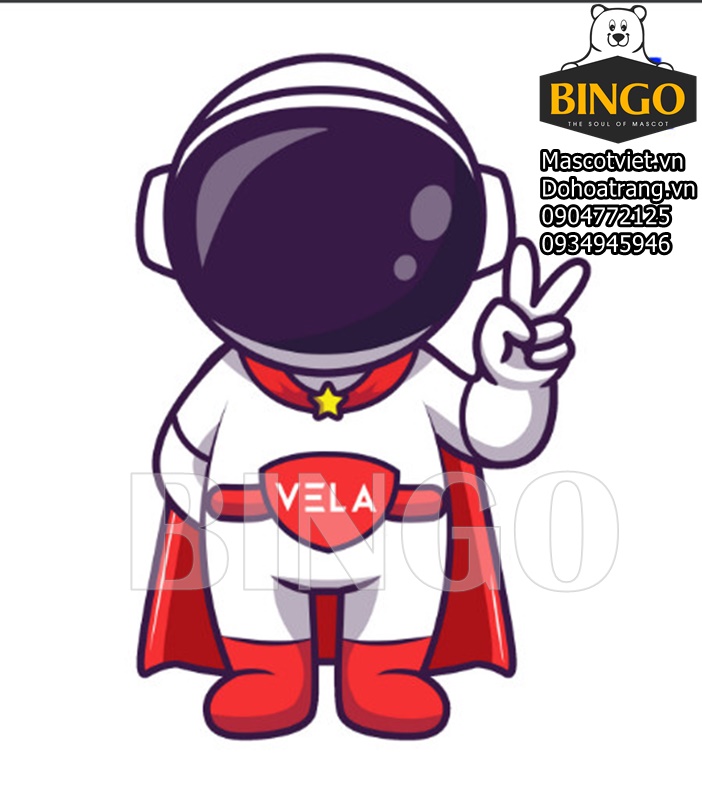 Mô hình composite phi hành gia Vela sở hữu bộ trang phục màu trắng muốt, tinh khôi, được tạo điểm nhất từ các họa tiết màu đỏ, vàng. Theo đó, cùng với sắc trắng phủ khắp cơ thể, phần cổ của mô hình là chiếc khăn quàng nhỏ, vị trí chính giữa nổi bật bởi hình ảnh ngôi sao màu vàng. Mascot cũng được trang bị một chiếc đai lưng đỏ, nổi bật ở vị trí chính giữa là dòng chữ Vela màu trăng trang trọng.